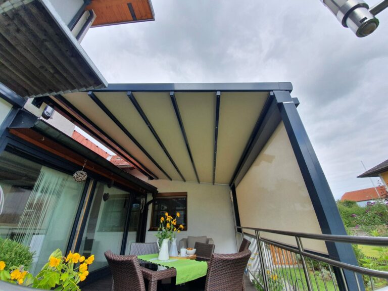 Genussvoll draußen leben. Egal bei welchem Wetter! Schutz gegen Wind, Regen und UV-Strahlung. Die Pergola-Markise ist flexibel einsetzbar und schenkt Ihnen mehr Zeit im Freien. Wenn Sie die Sonne genießen wollen, genügt ein Knopfdruck – und das Tuch öffnet sich. Wird das Wetter schlechter, schließen Sie die Falt-Markise einfach wieder. Schon sitzen Sie gemütlich im Trockenen – ohne Ihre Terrasse zu verlassen.
